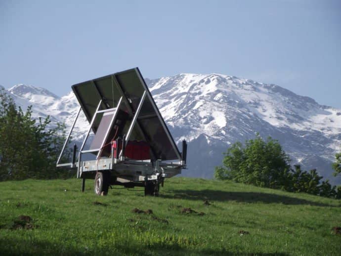 Benoit – who lives off-grid, himself – constructs all his equipment using solar energy …powering his welding machine and grinders. He also has an electric chainsaw and log-splitter for home use.