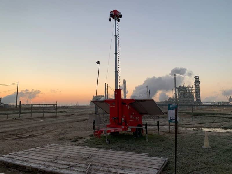 When Texas gas and electricity infrastructure installer CentrePoint Energy build new lines they establish storage areas of up to 12 acres where they lay down the plant and construction material they’ll use for the next 4 miles ahead. The entire area can be guarded by two, three or four security trailers.